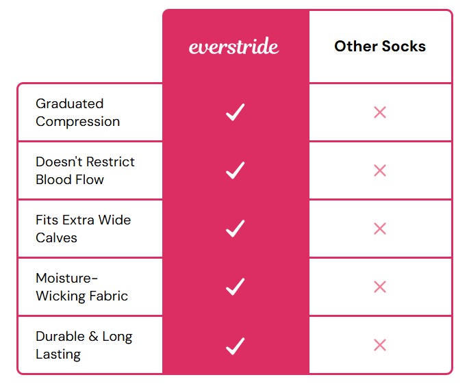 Everstride compression socks use a 15-20mmHg graduated compression to combat swelling.